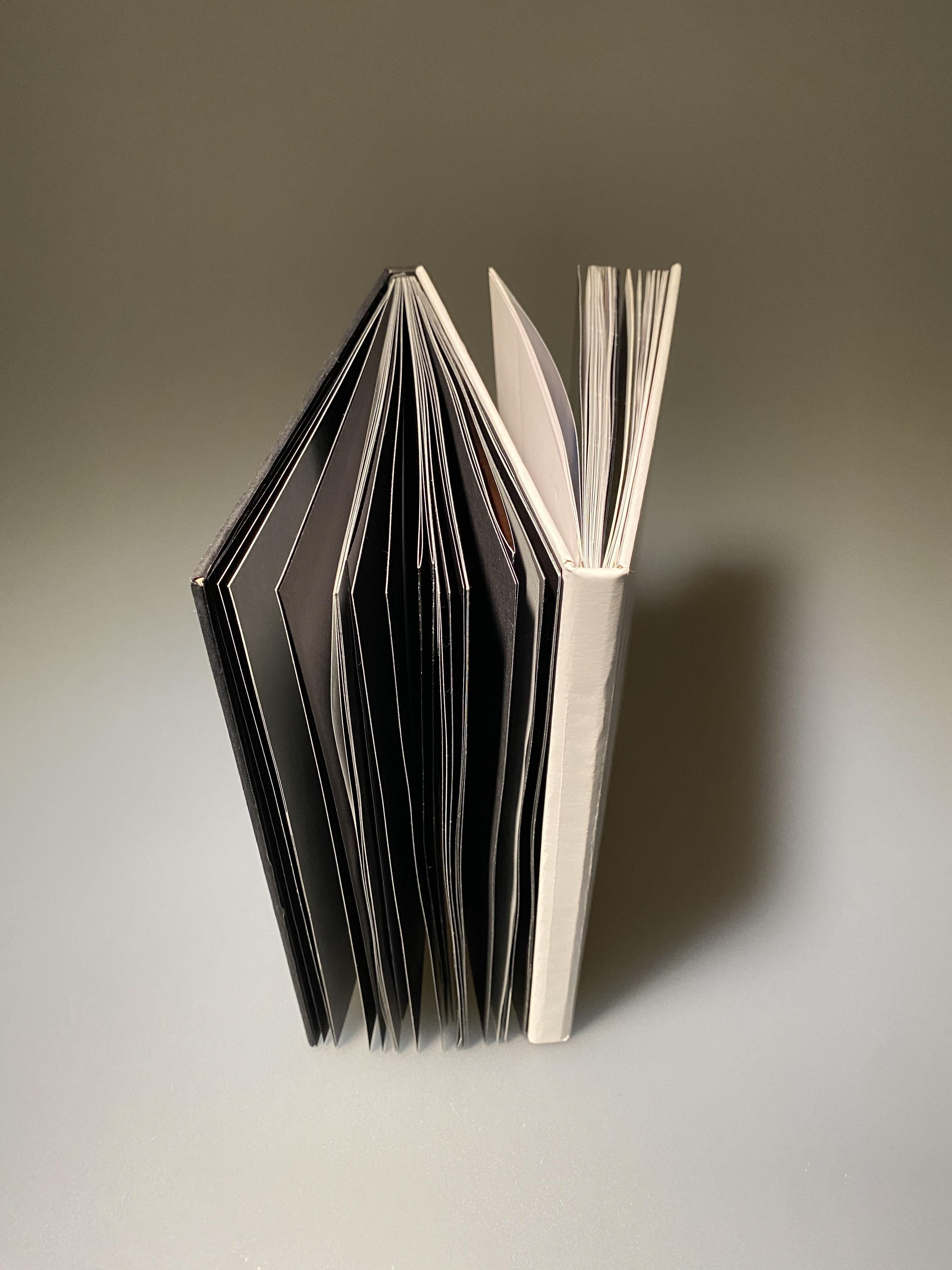 The book is split into two sides, The Light Side, and The Dark Side. I wanted light and dark to be separate however light and dark are so intertwined with each other they had to be connected one way or another. This is how the dos si dos binding style came about.